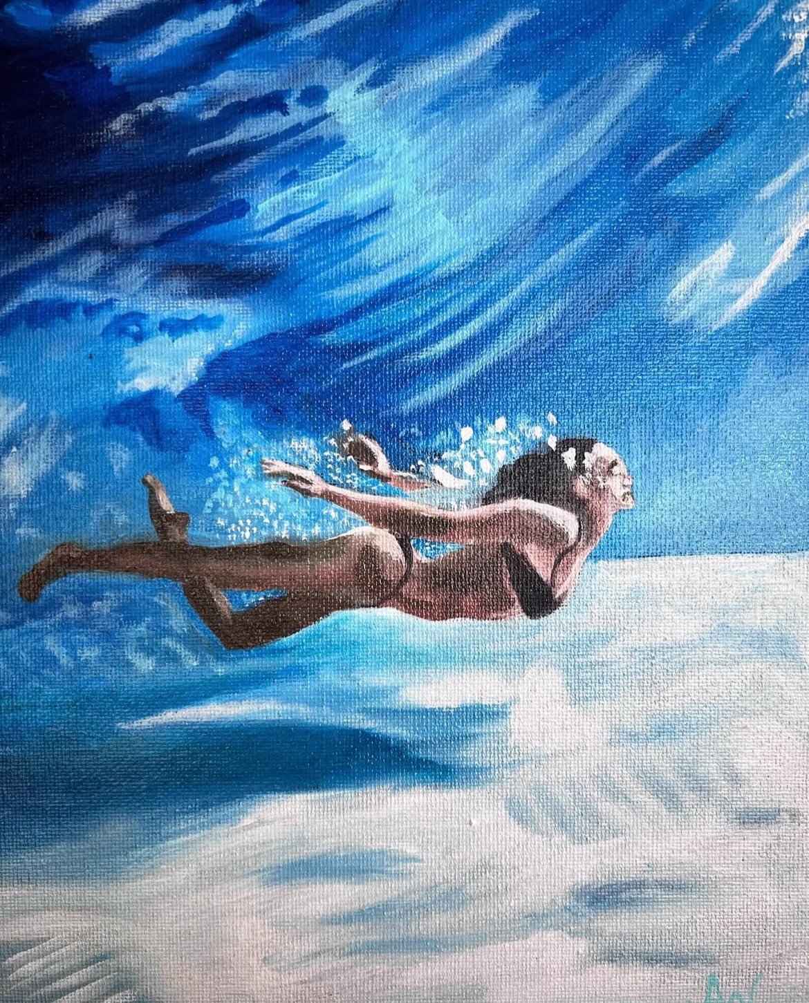 An abstract painter formally trained at the ANU School of Art and RMIT School of Design, Naomi explores how time and nature shape our connections and sense of self. Working in impasto acrylics, metallic leaf, cyanotypes and hand-cut paper, her poppies, lotus and coastal series reflect the beauty of her Surf Beach surroundings. “I love translating the colours and forms of the natural world onto canvas — bringing that connection with nature into people’s homes.